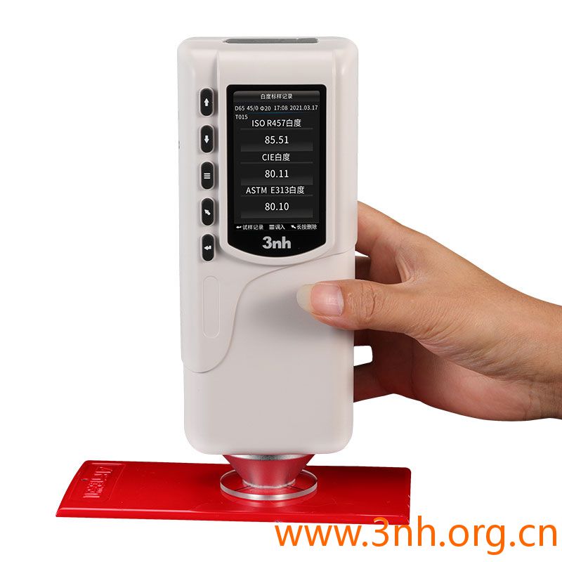 NR4520白度儀用于測定物體的ISOR457白度,CIE白度,ASTME313白度,黃度YIl,反射率,它廣泛應用于造紙、紡織、印染、塑料、陶瓷、搪瓷、糧食、建材、油漆、化工、鹽和其他需要測定特體白度的生產和商檢部門。NR4520白度儀還適用于測定各種鏡面反射率值,,測定ISO白度(ISO Brightness,即R457白度),對熒光增白的試樣,還可以測定其中熒光物質反射產生的熒光增白度。